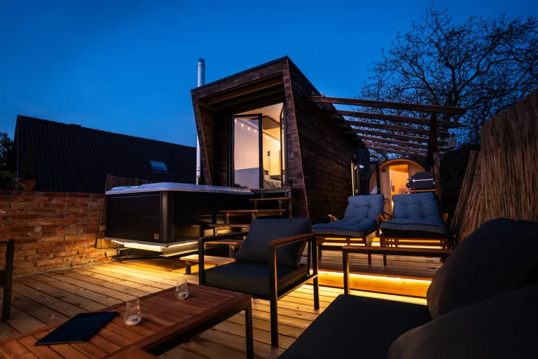 Für mehrtägige Projekte stehen Übernachtungsmöglichkeiten mit Whirlpool, Sauna und einem Pub gleich nebenan zur Verfügung.